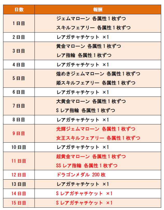 15 日目 S レアガチャチケット ×1