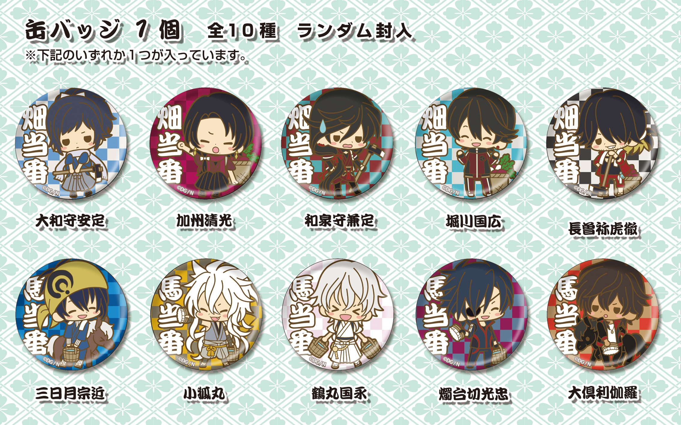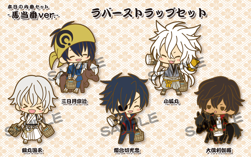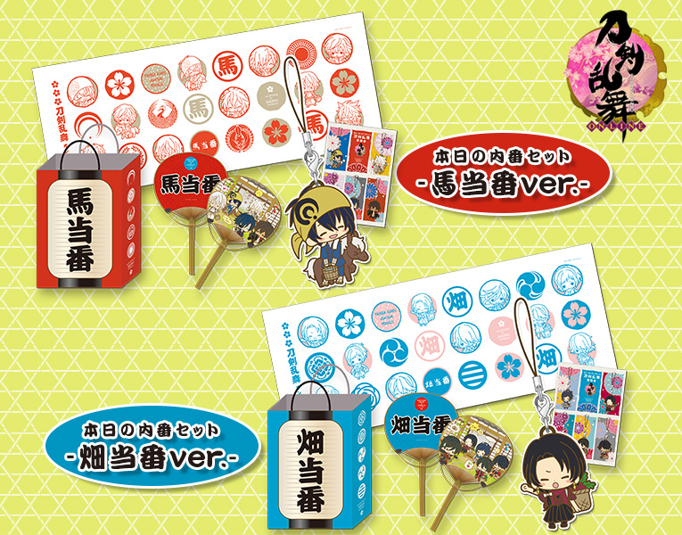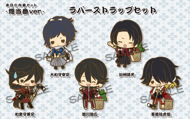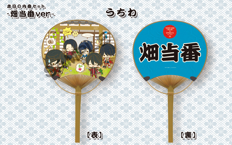 今年の「es fest(エスフェスト)」は、大人気の刀剣男士育成ゲーム『刀剣乱舞 -ONLINE-』とのコラボレーションが決定。毎年好評のイベントがさらにパワーアップして開催されます。販売商品は、ラバーストラップとうちわ、手ぬぐいが特製ショッパーに入った「本日の内番セット -畑当番ver.-/-馬当番ver.-(4,000円)」、せんべいと缶バッジがセットになった「esfest05 本日の内番お八つ(700円)」の3種。それぞれサクライ氏による刀剣男士達の描き下ろしイラストを使用した、ファン必見のアイテムとなっています。※価格は全てイベント特別価格(税込)です