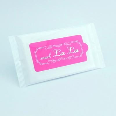 静岡県浜松市で営業するパブスナックが、来店されたお客様への粗品としてウェットティッシュを名入れ制作。粗品としての活用だけでなく、店内でのちょっとした気配りやお化粧直しなど、何かと便利なご利用シーンを想定し同商品を選定されたとのこと。名入れのデザインは同店のロゴマーク、白地に見栄えるピンクのラベルが優しい印象を際立たせているようです。