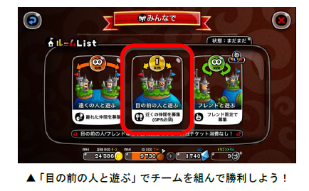 「目の前の人と遊ぶ」からルームを作成、または「目の前の人と遊ぶ」で
