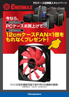 2015年7月11日(土)より全国のドスパラ店舗(通販、秋葉原本店、イオンレイクタウンmori店を除く)にて、「ENERMAX PCケース店頭購入キャンペーン」を開催いたします。