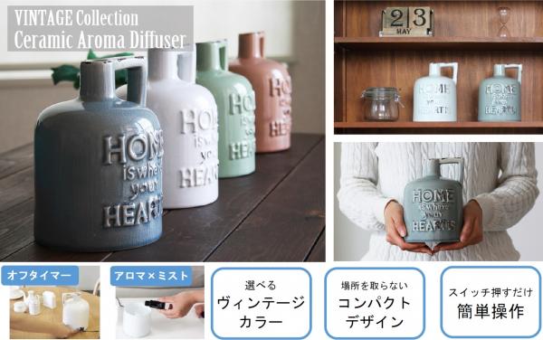 味わい深い傷や彩度を落とした趣深い色合いでお部屋を彩るヴィンテージコレクションのアロマディフューザー。一つ一つ微妙に違った表情を楽しむことができるのは陶器ならでは。そんな陶器からアロマの香りを漂わせ、リラックス空間をお届けします。陶器から広がるアロマの香りで新たなライフスタイルをお送りください。