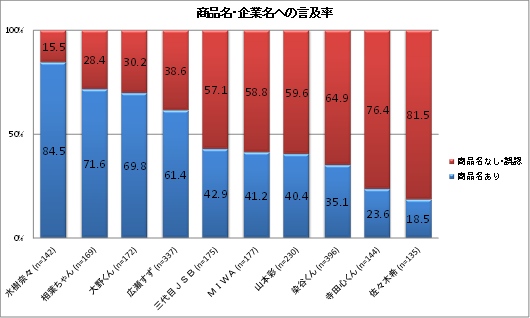 7.商品名も同時に言及している割合が高いタレントは水樹奈々さん