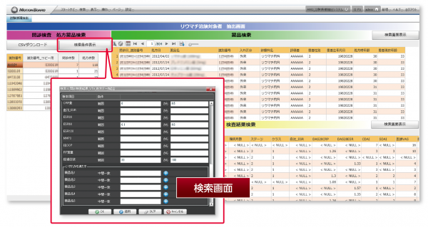 <検査数値、病名、投薬内容から、治験対象者を抽出>