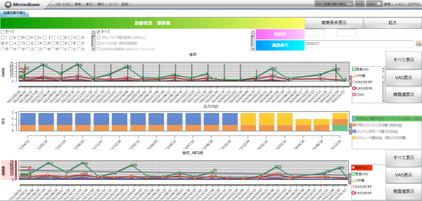 ・現状、データ統合ができないために、問診システムで症状に変化が現れても、その原因や処置内容を特定するには、電子カルテや血液検査システムの数値を手作業で検索問診、検査、処方の結果の推移をグラフで表現しなければならず、膨大な手間をかけている