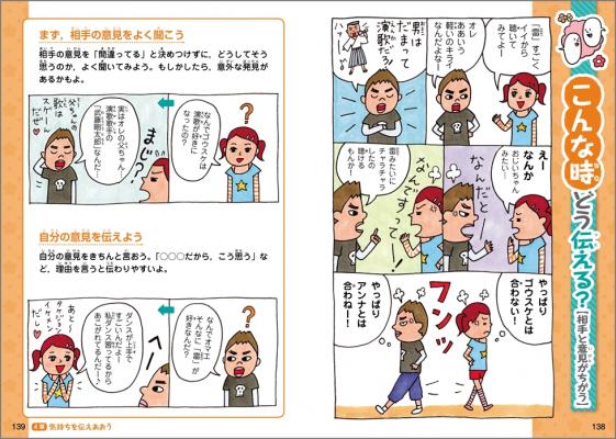 子どもも悩むことが多い友だち(人間)関係。「~自分と仲良く~」では、まずは自分の気持ちを知り、自分自身を認めることの大切さを学びます。また、いろいろな気持ちを知り、嫌なことがあったときの気持ちの整理法、相手の気持ちを考えることの大切さなどを解説しています。