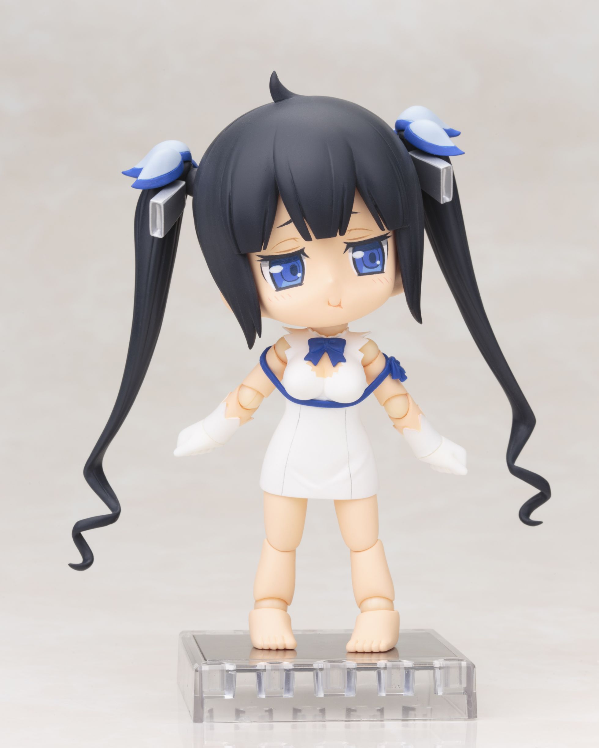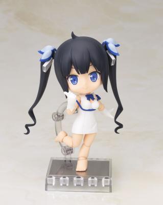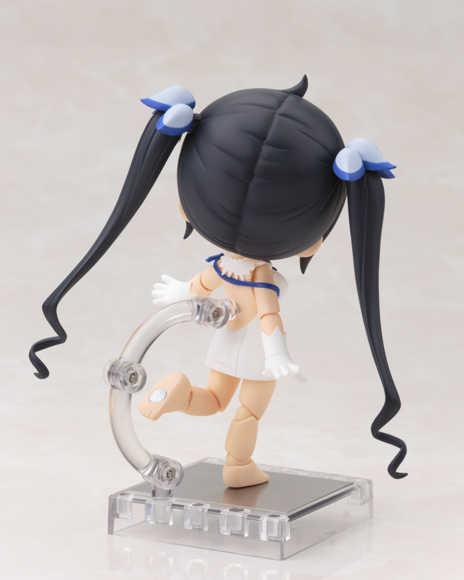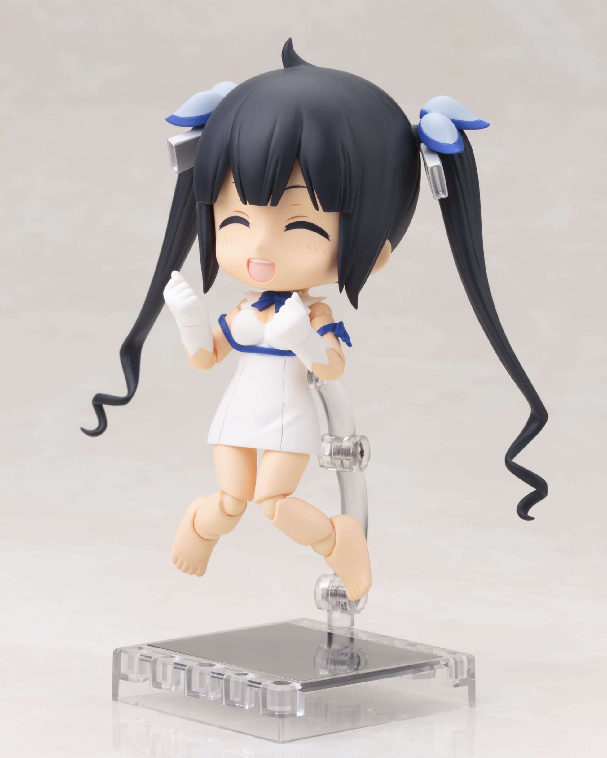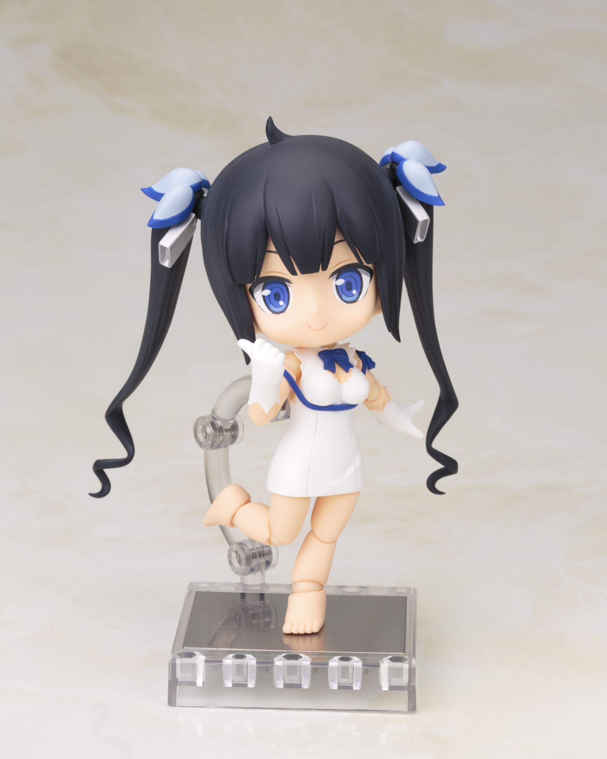 うごいてたのしいポケットさいずのキュートなふぃぎゅあ「キューポッシュ」。シリーズ第24弾は、『ダンジョンに出会いを求めるのは間違っているだろうか』より、主人公であるベル・クラネルの所属する[ファミリア]の主神、ヘスティアが登場です。「キューポッシュ」とは、2.3頭身のデフォルメキャラクターたちの、とっても可愛いポケットサイズの新しい可動フィギュアシリーズです。小さな体に豊富な可動、足裏のマグネットにより専用ベースの上では楽々といろんなポーズがとれ、充実の付属品でキャラクターのいろんな表情や印象的なシーンを再現できます。ヘスティアの胸まわりのブルーのリボンは、腕の動きを邪魔しない少し柔らかめの素材となっています。付属の4種の表情パーツで、表情がころころ変わるカワイイ神様の魅力をお楽しみください。