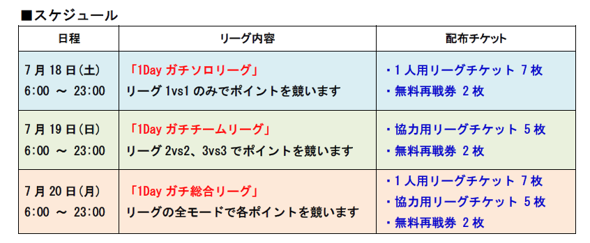 7月18日(土)より3日間、毎日リーグ内容が変わる「毎日決着ガチリーグ」を開催いたします。