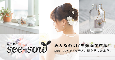 ※ DIY=Do It Yourself 「see-sow」が考えるDIYは、いわゆる“日曜大工”だけではなく、アクセサリー製作やルームデコレーション、ヘアメイクなど毎日の暮らしを自分の手で素敵に彩ることを含めて考えています。