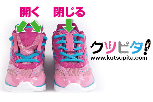 靴を履く時は、パチッとワンタッチで【クツピタ!】の両端を留めればいいだけ!