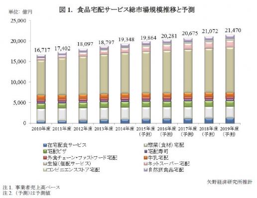 本調査における食品宅配サービス市場とは、(1)在宅配食サービス、(2)惣菜(食材)宅配サービス、(3)宅配ピザ、(4)宅配寿司、(5)外食チェーン・ファストフード宅配、(6)牛乳宅配、(7)生協の個配サービス、(8)ネットスーパー宅配、(9)コンビニエンスストア宅配、(10)自然派食品宅配を対象とする。但し、いずれの宅配サービスにおいても日用品、雑貨を除く食品群のみを対象とする。