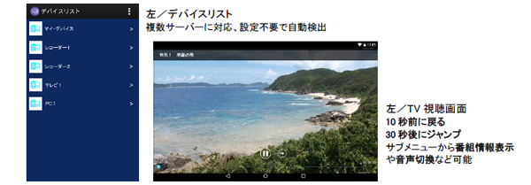 本製品は、無料版機能としてホームネットワーク上のDLNA端末の映像、音楽、写真を再生できるメディアプレーヤーを搭載、さらにアプリ内購入によりレコーダーやメディアサーバーに撮りためたテレビ番組や放送中の番組のライブ視聴が行える多機能ソフトウェアとなります。