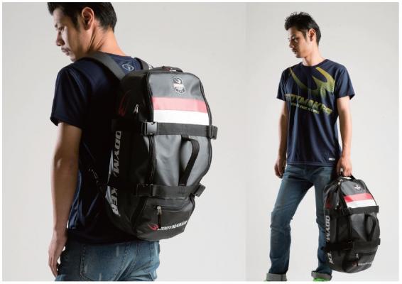 リュックと手提げで使用できる2WAY仕様。サイズは遠征バッグとしても利用できる31リットル。ショルダーパットにはクッションが入っていて長時間背負っていても疲れにくく、メッシュ素材で通気性も良く快適です。ショルダーパットは背中部分に収納できます。メインのファスナーはダブルファスナータイプで開閉が左右どちらからでも行えます。中には荷物を固定できるベルトがありノートPCなどを固定できます。内ポケットがあり小物の整理に便利です。サイドとフロントにもポケットがついています。ファスナートップは開閉しやすいように持ち手用のテープがついています。