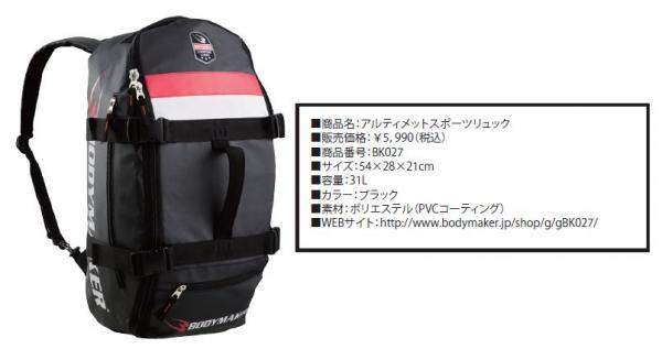 日本発のスポーツブランド「ボディメーカー」は、様々なシーンで利用しやすい大型の「アルティメットスポーツリュック」を、8月中旬より全国のボディメーカー直営店及びオンラインストア(http://www.bodymaker.jp/)で販売開始しました。