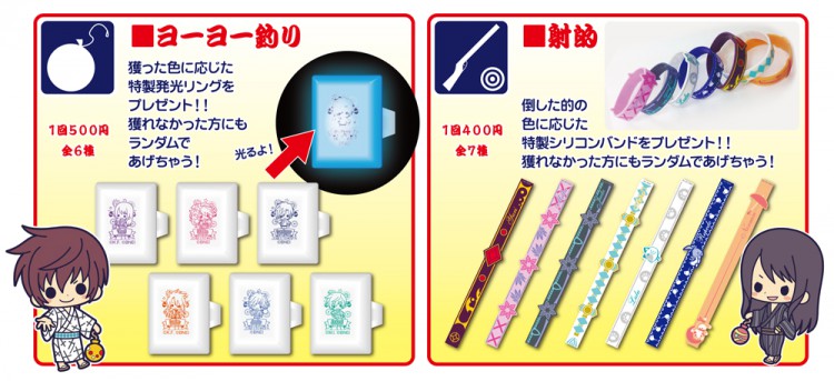 射的(1回400円)…倒した的の色に応じた特製シリコンバンド(全7種)をプレゼント。