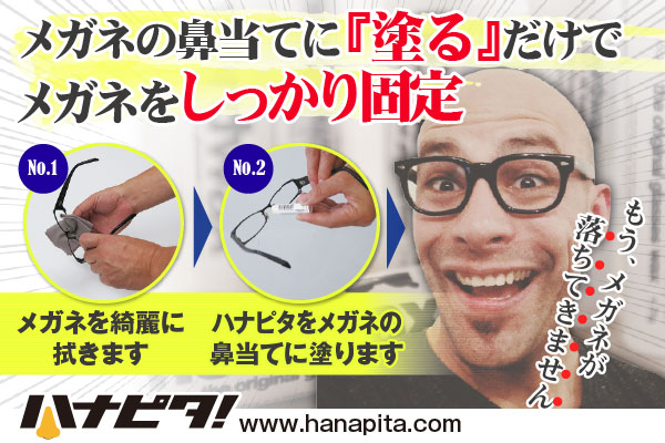 【ハナピタ!】があれば、しつこいメガネのズレ落ちからようやく解放されるのです!