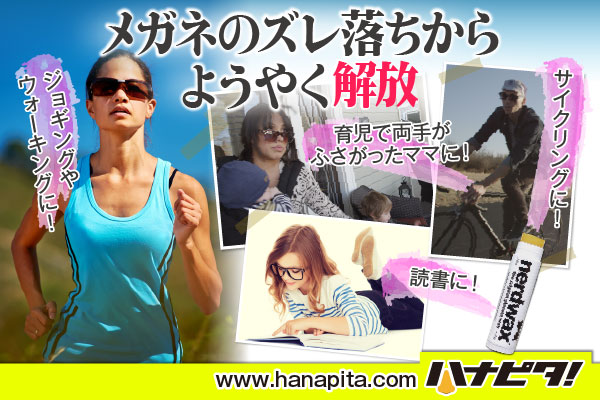 次はあなたが【ハナピタ!】で、メガネのズレ落ちを心配することなく、いつでもスッキリ・クッキリ!