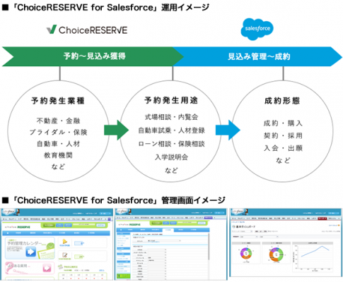 クラウド型予約管理のパイオニアである「ChoiceRESERVE」と、世界トップシェアを誇るセールスフォース・ドットコムのSFA(営業支援)アプリケーションの連携により、不特定多数の見込み客の獲得から成約までのプロセスの一元管理を実現するだけではなく、お客様のビジネスの売上拡大、顧客満足度と生産性の向上をより加速すると確信しています。