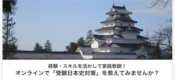 この度、学生時代に家庭教師や塾講師などの経験をお持ちの方、或は現在も指導経験を積まれている方を対象に、時間と場所を選ばず受験生を支援する事が出来る「オンライン日本史家庭教師」の募集ページをリリースしました。