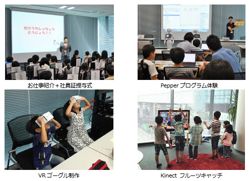 ファミリーイベント第5弾となる今回は、過去最多の34組89名の方が参加され、オフィス見学や、Pepperプログラム体験、VRゴーグル制作 (※1)、Kinect for Windows(※2)など、こどもから大人まで楽しめる、さまざまな社内開発のデジタルコンテンツを楽しんでいただきました。