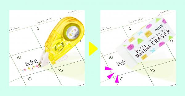 ■間違っても消せる! 「プチデコラッシュ専用消しゴム」(別売)でキレイにスケジュール管理