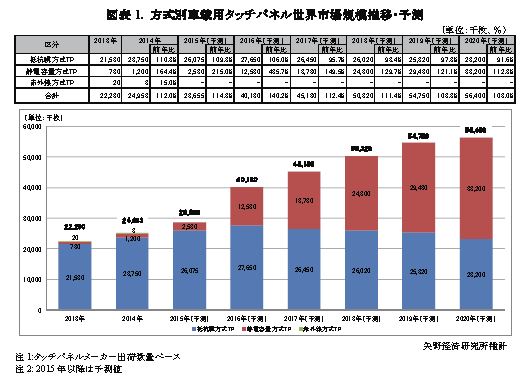◆2015年の車載用タッチパネル世界市場は前年比114.8%の2,866万枚と予測、