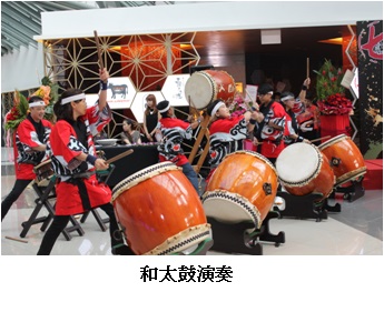 セレモニーは日本の伝統芸能である和太鼓の力強い演奏で幕を開け、開業した4店舗をお披露目し、来客者には各店の料理が振る舞われました。