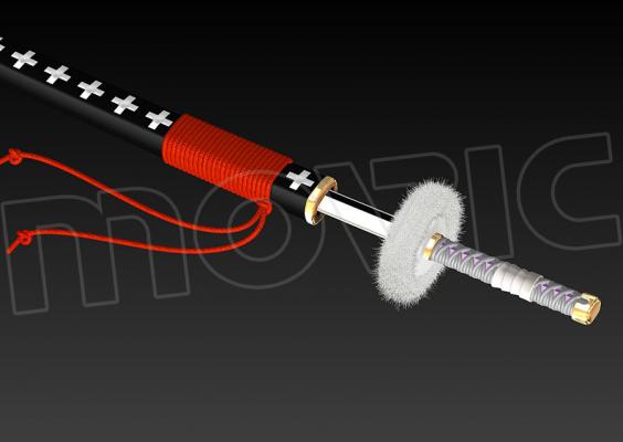 鍔は電気植毛(フロッキー)にて完全再現!鞘には実際に赤い紐が巻かれています!!