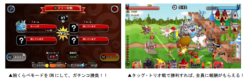 「腕くらべCP争奪バトル」の報酬が大増量!フリー対戦を腕くらべモードONで勝利すると、