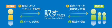 依頼者と翻訳者をウェブサイト上でマッチングさせ、依頼から納品までをネット上で完結させるクラウドソーシング型の「訳す/YAQS」は、登録翻訳者に対し、翻訳業界で20年の経験と実績のあるWIPジャパンがスクリーニングを実施します。