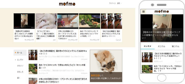 『mofmo(モフモ)』は、そんな家族の一員として大切な犬や猫の飼い主のために、お役立ち情報満載のコラムや、「飼ってはいないけど犬や猫は大好き」という方も楽しめるキュレーションメディアです。