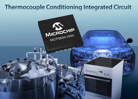 マイクロコントローラ、ミックスドシグナル、アナログ、Flash-IPソリューションのトッププロバイダであるMicrochip Technology Inc.(日本支社: 東京都港区浜松町、代表: 吉田洋介 以下Microchip社)は本日、世界初の熱電対向け信号コンディショニングIC、MCP9600を発表しました。本デバイスは高精度計装回路、高精度温度センサ、高精度高分解能A/Dコンバータ(ADC)、一般的な熱電対タイプ(K、J、T、N、S、E、B、R)を幅広くサポートしたファームウェア書き込み済みの数値演算エンジンを内蔵しています。熱電対は過酷な高温環境での堅牢性と精度に優れ、きわめて広いレンジの温度を計測できるため、最も広く使われている温度計測デバイスの1つです。MCP9600は数多くのディスクリート デバイスをワンチップに集積しており、熱電対を使った設計が簡単になると同時に、基板面積、コスト、消費電力を減らす事ができます。