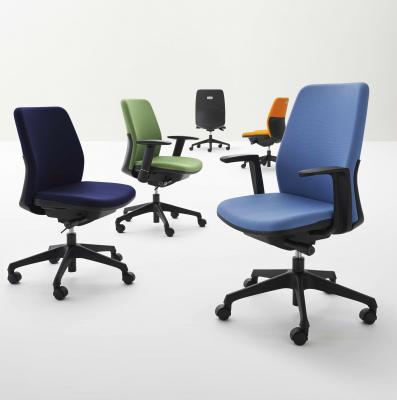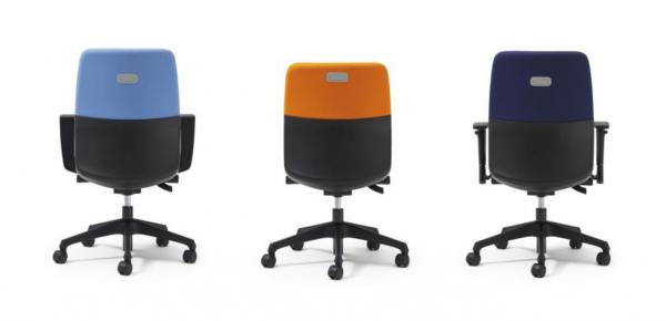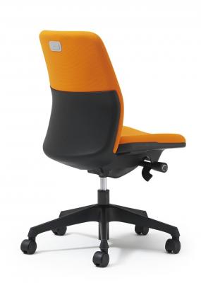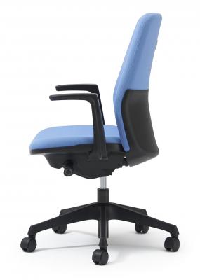 本製品のデザイナーは、コンパクトでカラフルなオフィスチェアとして人気の「プリセア」(2013年発売)を手掛けた伊丹由和氏。よりグレードアップを図った今回の「カイル」は、シャープな印象を与える形状とし、背もたれの背面をハーフカバーのデザインにしました。ブラック色のシェルカバーとカラフルなクロスのバイカラー(ツートンカラー)のコントラストが鮮やかなバックスタイルで、オフィスインテリアにアクセントと統一感を演出します。ベーシックなデザインが使い手やオフィスシーンを選ばず、幅広くお使いいただけます。クロスカラーはブラック、ブルー、ライトブルー、イエローグリーン、オレンジの全5色。