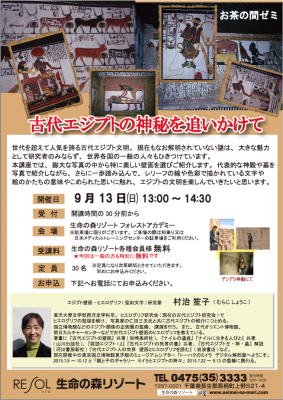 <生命の森リゾート「お茶の間ゼミ」2015年9月の各種講座&イベント予定>