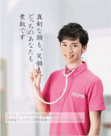 今回、配布したあぶらとり紙は、俳優を起用し、実際の支援先訪問看護ステーションで用いられているユニフォームを着用したデザインとなっています。全体として「爽やかさ」を意識したデザインとなっており、現場で働く看護師をはじめとした、作業療法士、理学療法士など職員の方に、少しでも元気を渡したいという思いが込められています。
