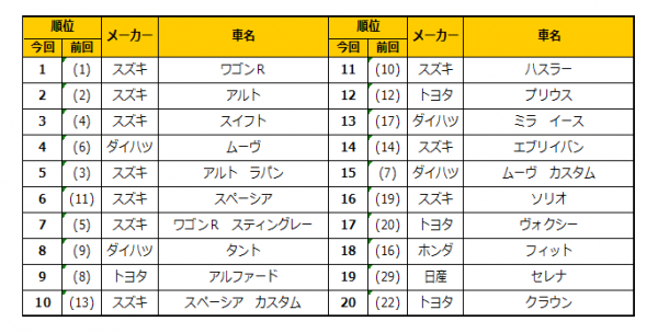 8月のランキングでも「ワゴンR」は首位をキープしました。