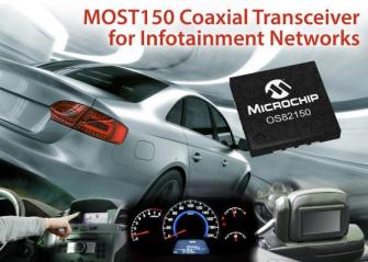 [NASDAQ:MCHP] - マイクロコントローラ、ミックスドシグナル、アナログ、Flash-IPソリューションのトッププロバイダであるMicrochip Technology Inc.(日本支社: 東京都港区浜松町、代表: 吉田洋介 以下Microchip社)は本日、業界初のMOST150同軸トランシーバを発表しました。OS82150は同軸ケーブルドライバと同軸ケーブルレシーバを小型の4x4 mm QFNパッケージに統合しています。これにより、最新のMOST150規格車載インフォテインメント ネットワークで同軸ケーブルが使えるようになりました。