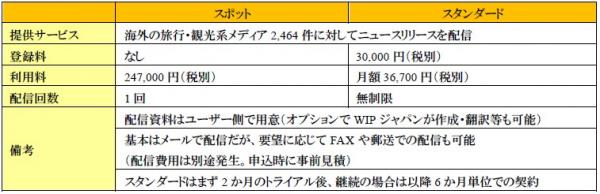 こうした事情から、WIPジャパンでは、保有する2,464件の旅行・観光系の海外メディアに向けてのニュースリリース配信サービスを開始することを決定しました。