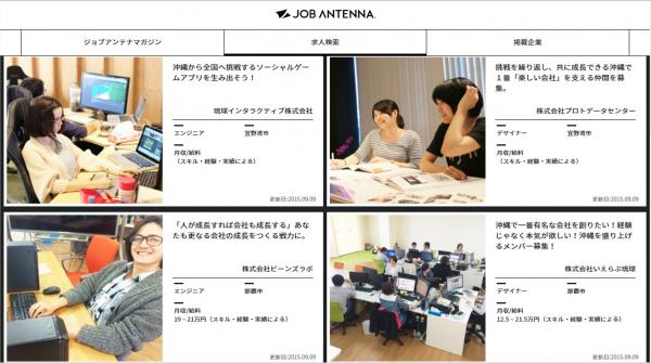 沖縄発のインターネットベンチャーである琉球インタラクティブ株式会社(本社:沖縄県宜野湾市、代表取締役社長:臼井 隆秀、以下「琉球インタラクティブ」)は、25歳~34歳までの元気のある即戦力人材をターゲットにした沖縄の転職支援・求人情報サイト「ジョブアンテナ(JobAntenna)」を、本日2015年9月14日にグランドオープンしました。