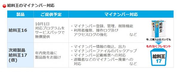●給料王16をご購入いただくと、もれなくマイナンバー制度に対応した次期製品プレゼント