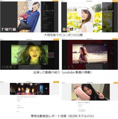 また、プロフィールはBIJIN&Co.会員向けアプリ『BIJIN PASS(※)』上で必要なプロフィールデータを入力いただくことで、誰でも作成することが可能となっており「モデルになりたい」「メディアに出演したい」などエンタメ業界でチャレンジしたい女性なら誰もが作成するコンポジ(コンポジット、宣材プロフィール)を美しいプロフィールサイトとして簡単に作成することができます。
