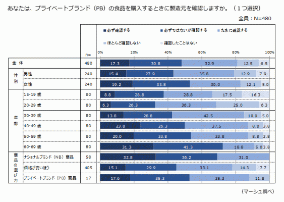 そもそも消費者の製造元に対する意識はどの程度なのだろうか。また PB 食品を選ぶ基準はなんだろうか。