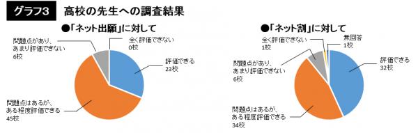 同時に全国各地区の高校の進路指導の先生に、ネット出願に関する意識調査を行い、74校の回答を得た。