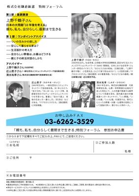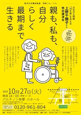 株式会社鎌倉新書(本社:東京都中央区、代表取締役社長:清水祐孝、以下 当社)と、一般社団法人コミュニティネットワーク協会(本社:東京都千代田区、会長:袖井孝子、以下 コミュニティネットワーク協会)は、2015年10月27日に上野千鶴子氏特別講演 フォーラム「親も、私も、自分らしく最期まで生きる」を開催します。