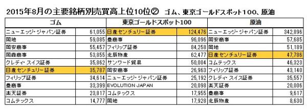 東京商品取引所における2015年8月の取引実績のお知らせ