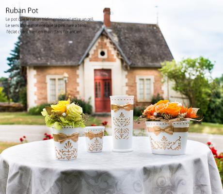 雰囲気に。気持ちを込めた贈り物がいつまでも特別な存在であり続けて欲しい。そんな想いを込めた、リボンをモチーフにしたリュバンポット。これからのクリスマスシーズンに、食卓を華やかに演出するデーブルアレンジメントにも活用できます。