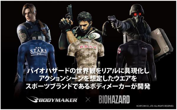 日本発のスポーツブランド「ボディメーカー」は、スポーツメーカーのノウハウを詰め込み、BIOHAZARDの世界観をリアルに具現化させ、アクションシーンを想定したスポーツウエアを開発し、9月24日(木)より予約販売の受付を開始しました。
