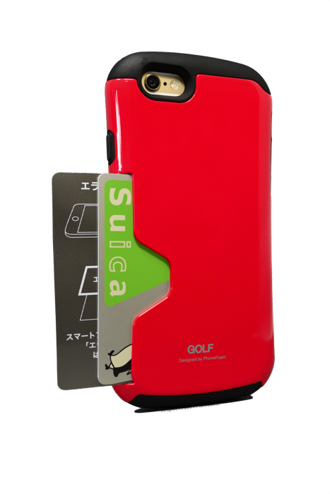 PhoneFoam Golfは、スタイリッシュなデザインでありながら、スマートフォン本体への衝撃を緩和する2層構造をもち、更にスマートフォンに装着したままカード収納・取り出しができる機能を兼ね備えた人気のスマートフォンケース・シリーズです。