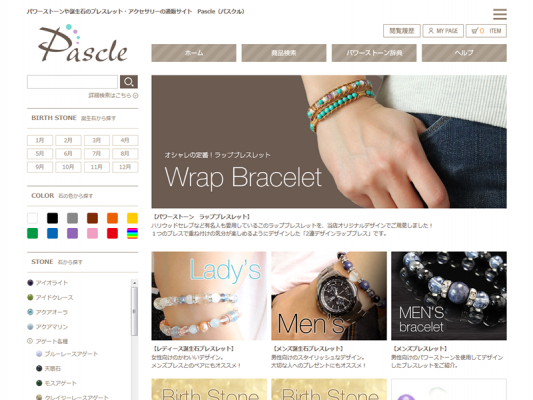 Pascleは、天然石や誕生石など、多数のパワーストーンを使用したアクセサリー販売を行なう
