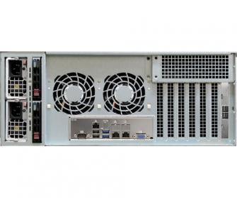 LGA-2011 v3 ソケット(ソケット R3)対応の Xeon E5-1600 v3 および Xeon E5-2600 v3 ファミリーCPU が搭載可能で、24 台の 3.5 インチ・ホットスワップ対応リム―バブルベイと、システムの連続運用を可能にする、ホットスワップ・リダンダント電源を備えた、4U システムです。Intel Hyper-Threading Technology のサポートにより、最大 18 コア 36スレッドの 64bit 並列演算処理に対応し(1)、Intel Turbo Boost Technology 2.0、AVX2 コマンドセットなどの最新技術のサポートと、最大 5GT/s の DMI2 リンク、2133MHz DDR4 メインメモリー、最大 45MB の LLC キャッシュなどの強力なハードウェアにより、アプリケーションのパフォーマンスを、従来のシステムとの比較で 20%から 70%向上します。シリコンレベルで CPU に内蔵された PCI-Express3.0 規格の I/O コントローラ には、8x レーン・バス 4本、8x レーン・バス 2本、4x レーン・バス 2本がシステム拡張バスとして接続されており、高速通信ボード、12/6Gbps SAS/SATA RAID コントローラ、GP-GPU などが増設できます。CPU直結の 288ピン DIMM ソケットには、256GB までの ECC Registered DIMM または 512GB までの ECC LR-DIMM が実装できます。